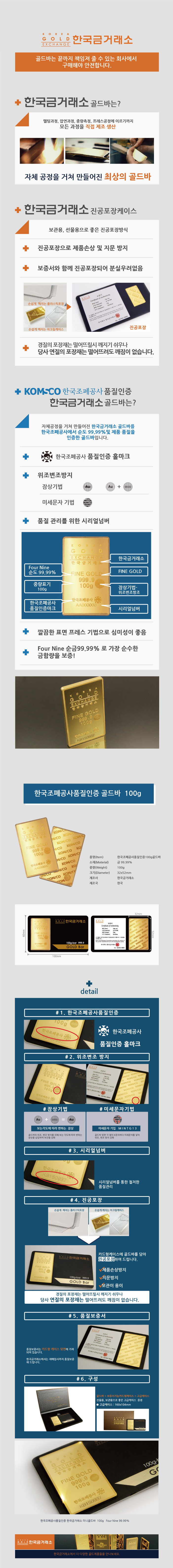 한국조폐공사 품질인증 골드바 100g