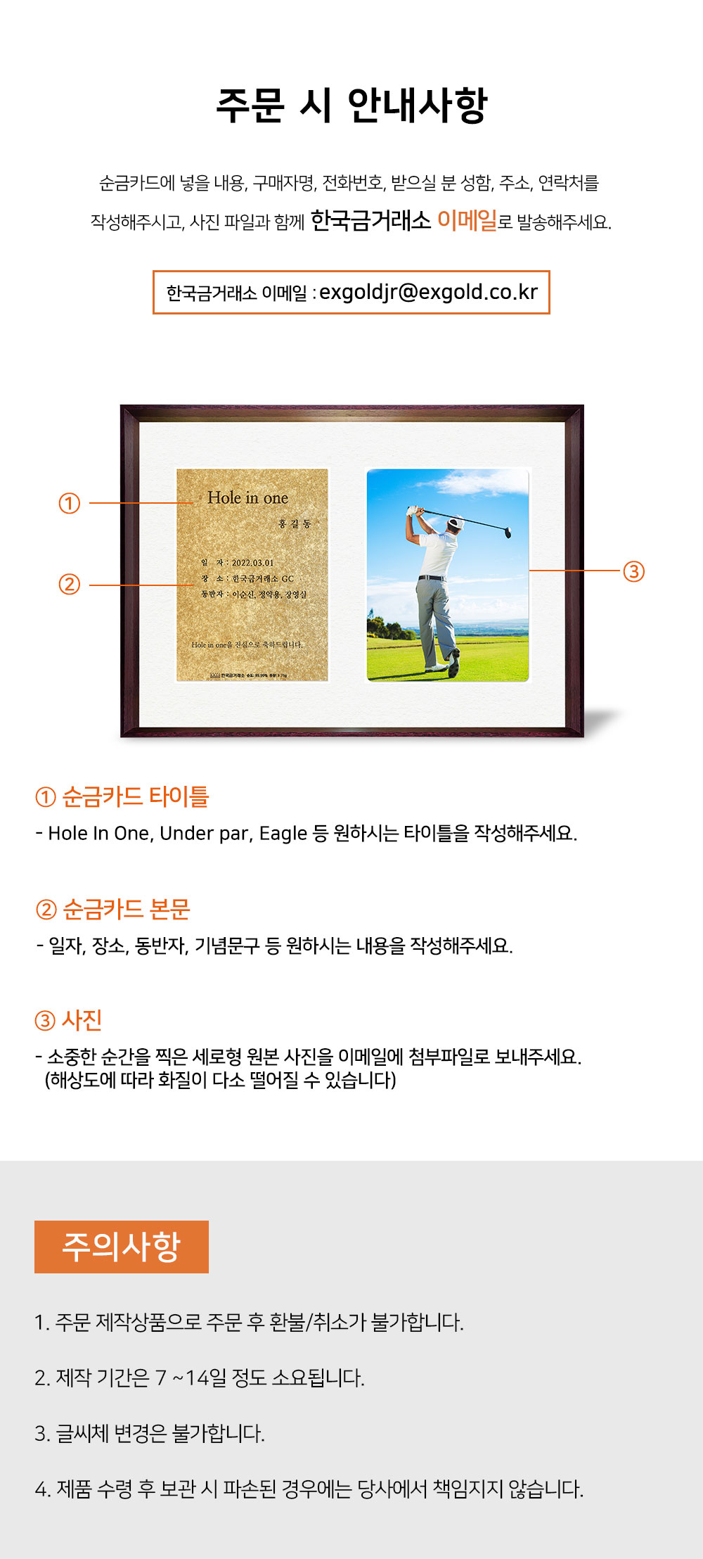 액자형 순금 홀인원 카드 3.75g