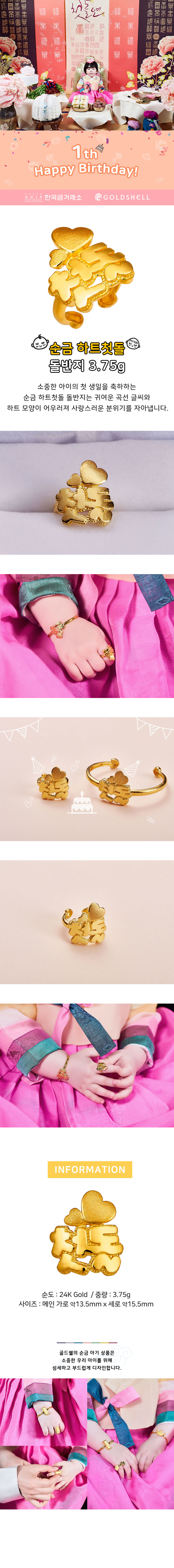 순금 하트첫돌 돌반지 3.75g
